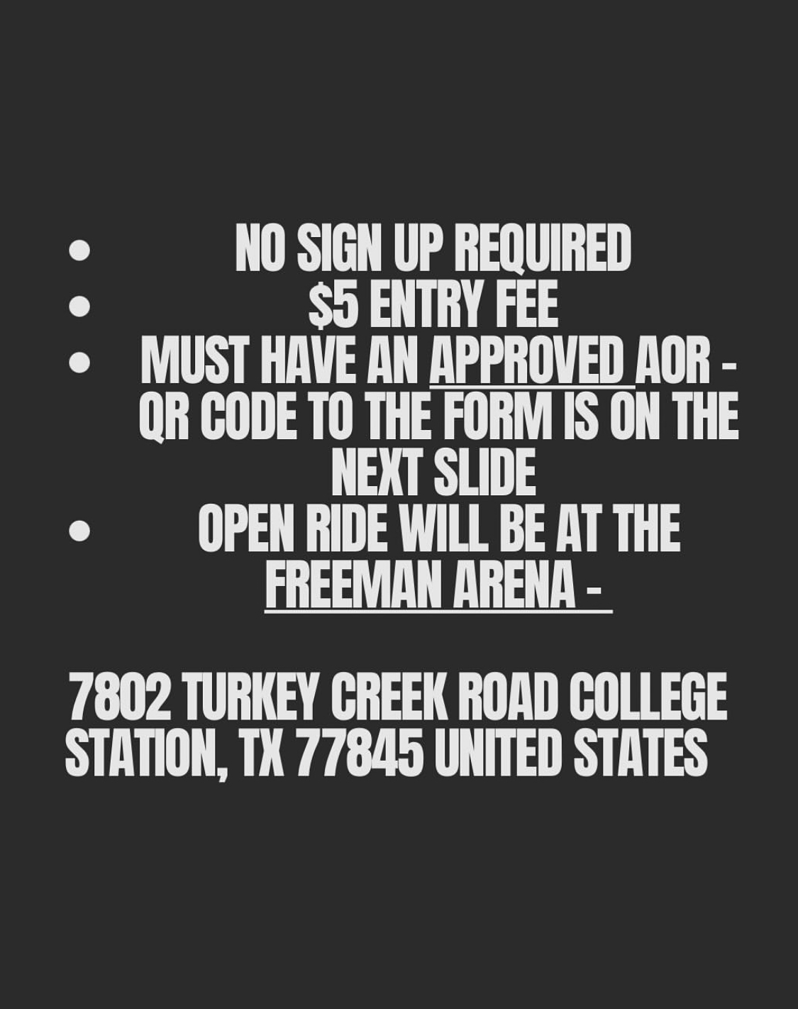 You must have an approved AOR form filled out at least 24 hours before riding. Scan the QR Code and go the the ‘Agreements’ tab or visit the link to access the AOR Form. Please be sure to select the “Texas A&M Polo Club” when filling out the form. If you are a staff member, you will receive a paper copy when you arrive at the barn.